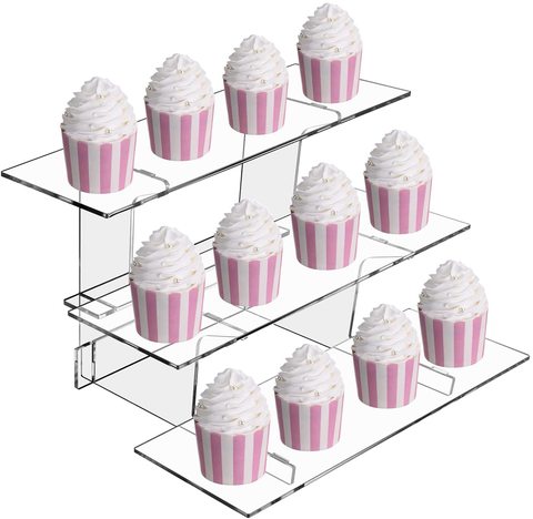 Soporte de exhibición de acrílico de 3 niveles, expositor transparente y recto, para decoración de pasteles, estantes portátiles para fiestas y bodas