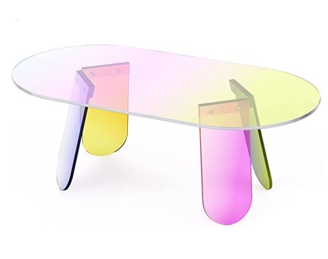 אקריליק קפה שולחן ססגוני זכוכית קצה שולחן עגול צד שולחן צד עגול קריסטל קשת ברור אקריליק Teapoy